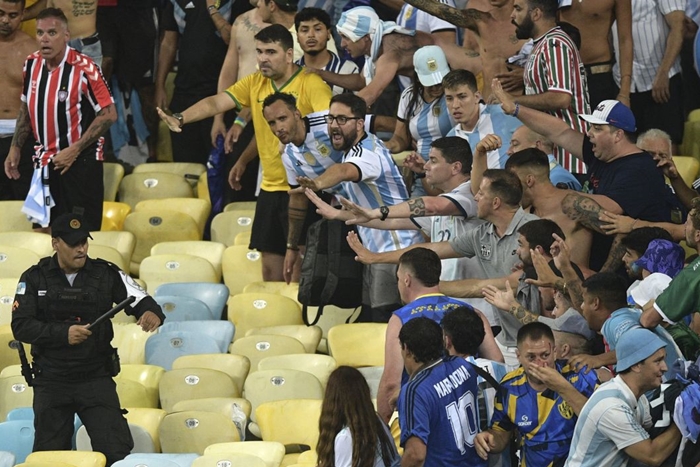 이 과정에서 자국 팬들이 곤봉에 맞는 모습을 본 아르헨티나 선수단은 이에 항의하며 그라운드에서 빠져 나가기도 했습니다.