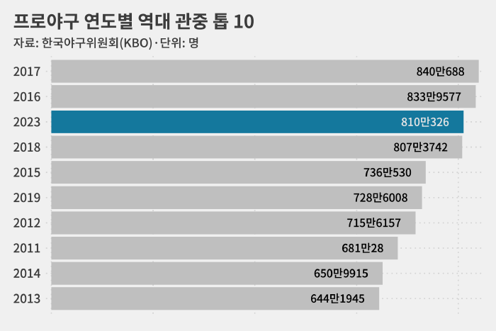 올해 정규리그 720경기를 찾은 관중은 총 810만326명으로 역대 3위에 해당합니다.