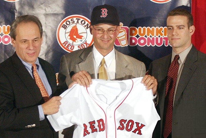 메이저리그 역대 최연소 단장 타이틀을 얻은 그는 2004년 팀을 월드시리즈 정상으로 이끌면서 86년 묵은 '밤비노의 저주'를 끊어냈습니다.