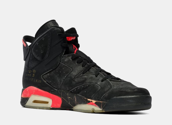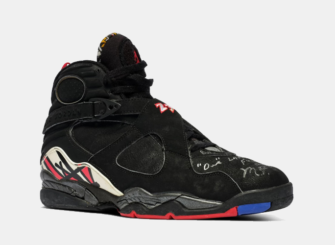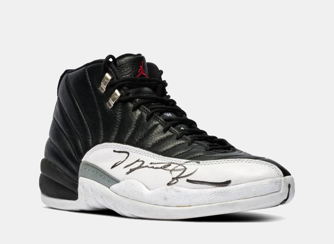 시카고 구단 홍보팀 직원 팀 할럼이 경기가 끝날 때마다 조던에게 신발을 한 짝씩 받아 간직하고 있다가 한 수집가에게 넘겼고 그 수집가가 이를 경매에 내놓은 것.