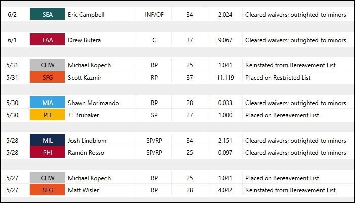 이때부터 구단은 이 선수 계약을 산하 마이너리그 팀으로 양도할 수 있는 자격을 얻습니다.