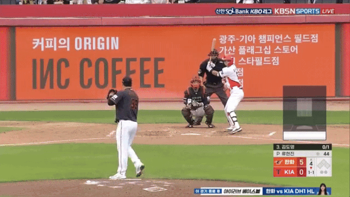 이 이닝 선두 타자로 나온 김도영은 상대 선발 류현진(37)이 던진 시속 125km짜리 체인지업을 받아쳐 가운데 담장을 넘겼습니다.