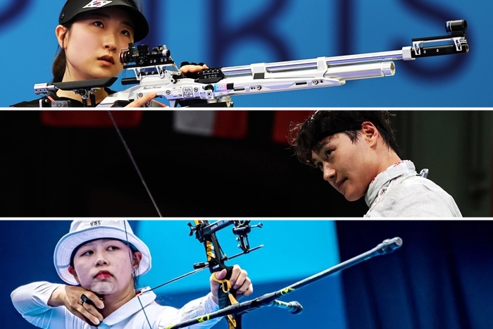 한국은 이번 올림픽 총(사격), 칼(펜싱), 활(양궁) 세 종목에서 금메달 10개를 포함해 메달을 총 16개 따냈습니다.