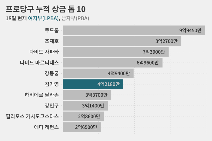 LPBA 선수가 누적 상금 4억 원을 돌파한 것도 김가영이 처음입니다.