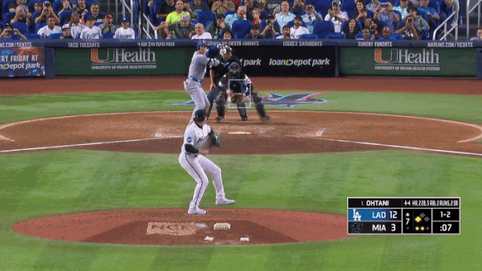 그리고 마이애미 네 번째 투수 마이크 바우먼(29)이 네 번째 공으로 던진 너클커브를 받아쳐 왼쪽 담장을 넘겼습니다.