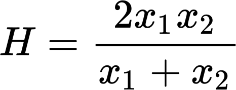 숫자가 두 개 있을 때 조화 평균을 계산하는 아래 공식에 30과 60을 넣어보면 40이 나옵니다.