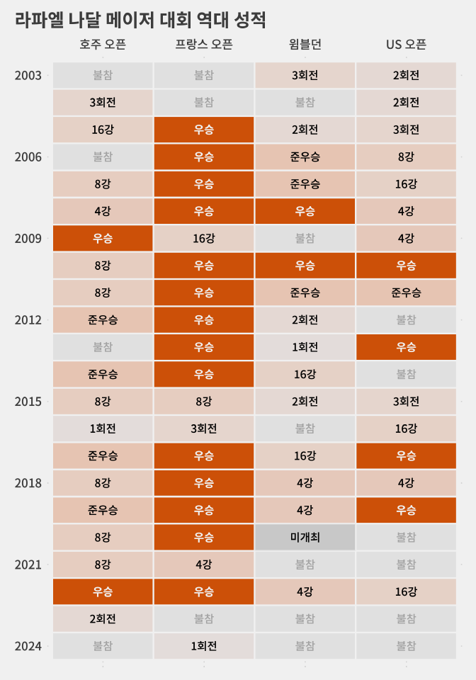 그리고 라파엘 나달(38·스페인)만큼 이 말을 멋지게 증명한 선수는 없었습니다.