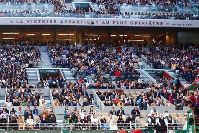 프랑스 오픈 테니스 대회 메인 경기장 필리프 샤트리에 코트를 찾은 팬들은 이 문구를 사이에 두고 챔피언 탄생을 기다립니다.