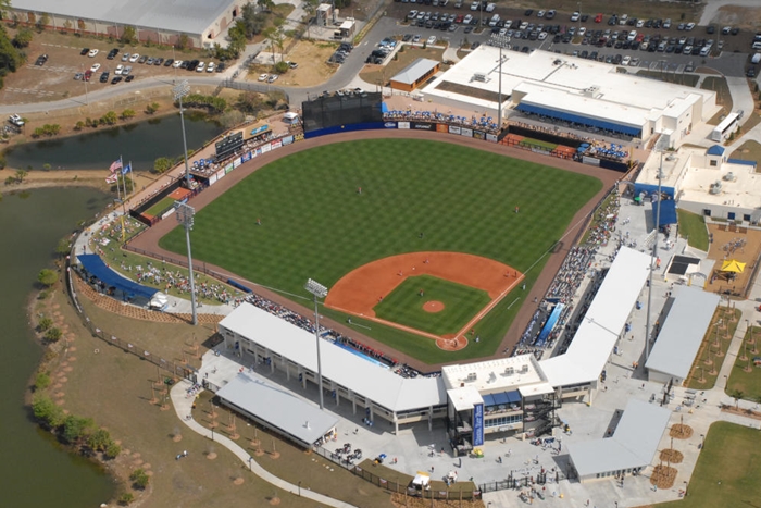 트로피카나 필드에서 차로 30분 떨어진 곳에 있는 뉴욕 양키스 스프링 캠프 안방 구장 '조지 M 스타인브레너 필드'는 1만 명을 넘게 수용할 수 있습니다.