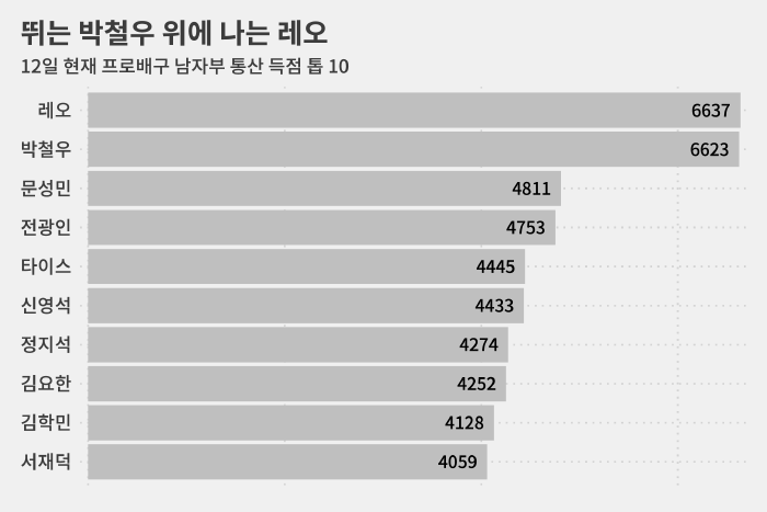레오는 통산 득점을 6637점까지 끌어올린 채 이날 경기를 마쳤습니다.