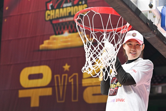 WKBL에서 선수와 감독으로 모두 우승 트로피를 들어 올린 것도 박 감독이 처음입니다.