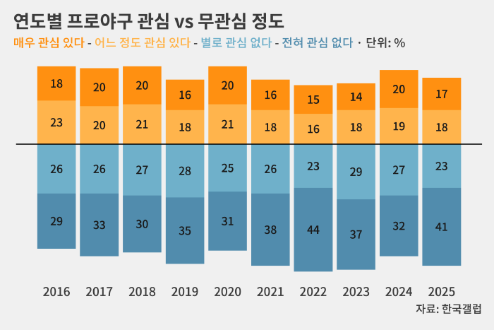 해마다 '프로야구에 대한 여론조사'를 실시하는 한국갤럽에서 2025년 조사 결과를 2일 공개했습니다.