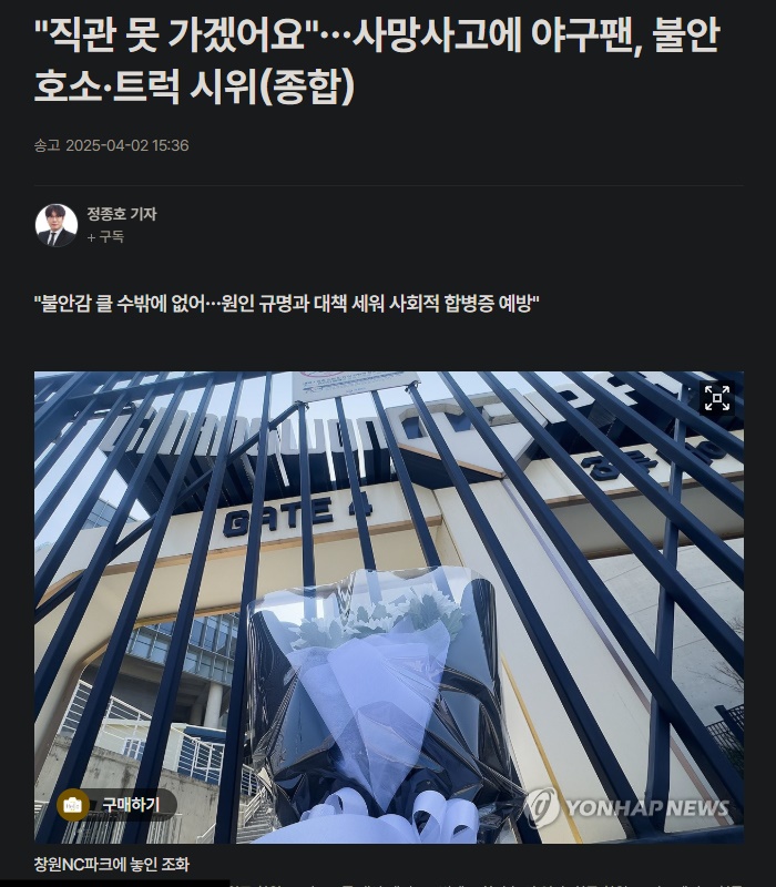 그러면서 "최근 잠을 깊게 자본적 없다"며 "평생 야구장에는 못 갈 것 같다"고 덧붙였습니다.