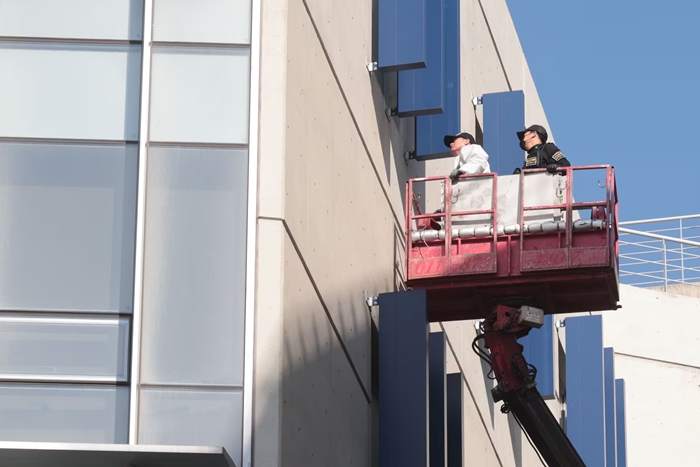 창원구장 외벽에는 무게 60kg짜리 알루미늄 루버를 총 230개 설치한 상태였습니다.