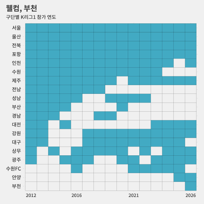 거꾸로 경기 부천시는 SK(현 제주)가 마지막으로 둥지를 틀고 있던 2005년 이후 21년 만에 K리그1 참가 구단을 보유하게 됐습니다.